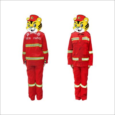 阻燃效果達到國家B1級,續(xù)燃時經(jīng)、緯向小于2秒,阻燃時間經(jīng)、緯向小于3秒,布料為橘紅色純棉阻燃布。服裝加工采用雙縫線加固縫制,襠布采用科學(xué)的包襠處理,前胸后背有醒目的寬度為3cm的夜光帶,左臂有“中國森林消防”臂章,后背印有“森林防火”字樣,左胸前有“森林消防”字樣,衣領(lǐng)可立,衣前襟結(jié)合采用拉鏈及五顆四合扣,便于穿脫。